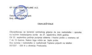 Поштовани суграђани, корисници услуга КП “Градске топлане” АД Пале,
